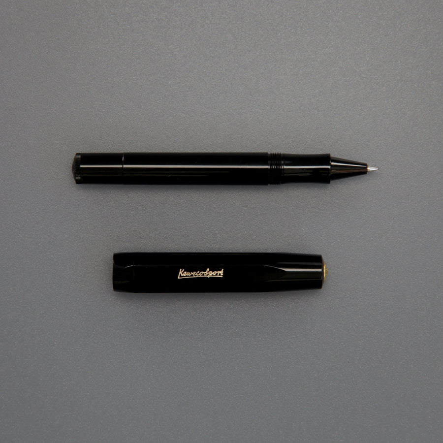 We love the clever style of this Kaweco pocket rollerball pen, which is derived from an original 1935 octagonal design. The oversized cap arrangement creates a small closed pen but a standard length pen once open.