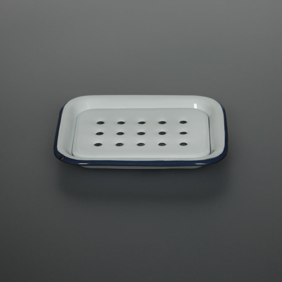 This classic enamel soap dish comes in two parts. The top has holes for drainage and sits on top of a dish to collect the drips. A perfect partner for our blocks of Marseille Soap.