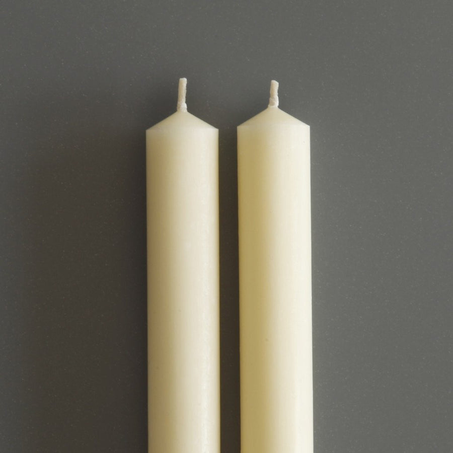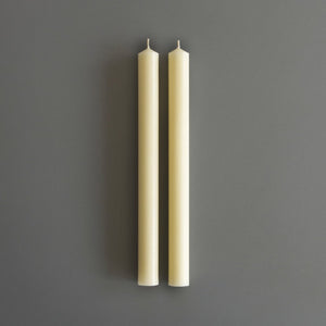 These classic dinner candles are handmade in Cornwall using traditional methods. The wick is drawn through a bath of molten wax, increasing the diameter of the candle layer by layer until the required size is achieved.