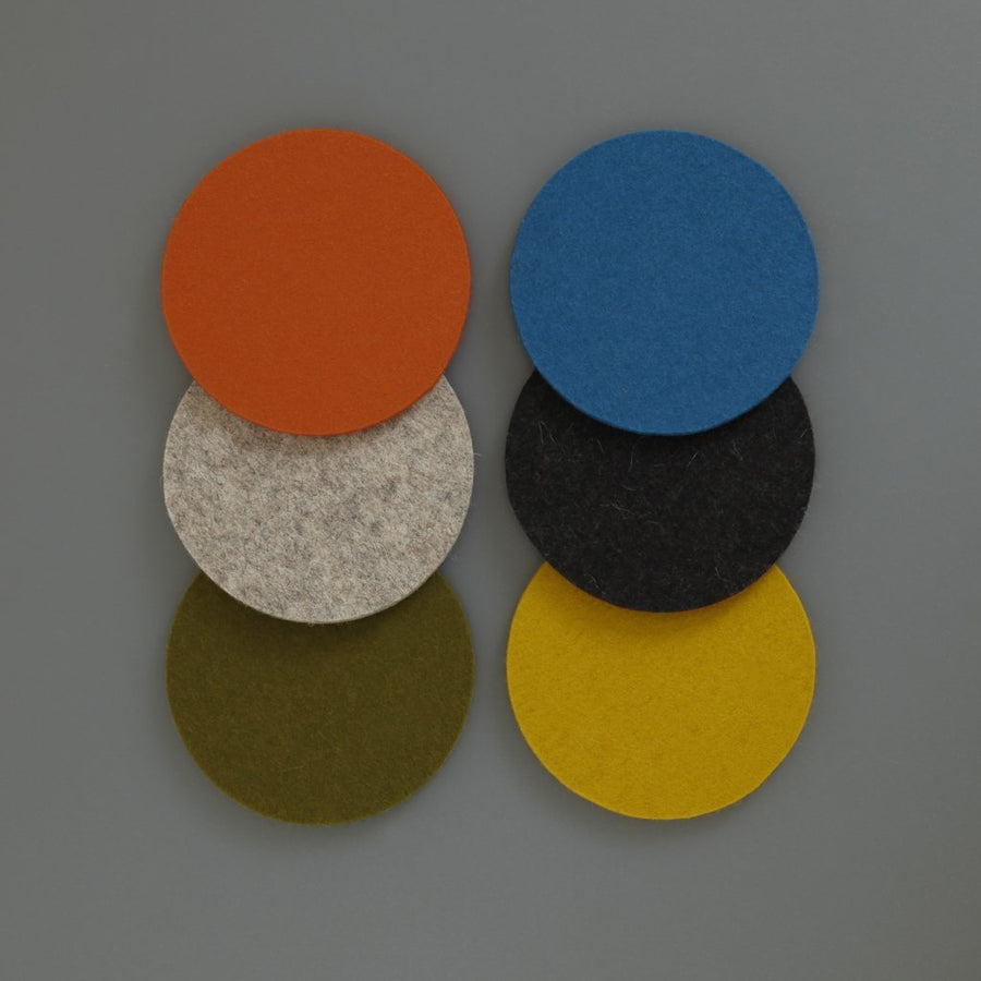 These wool felt coasters are from Germany. They absorb moisture and insulate against heat, thus providing effective protection for any surface.