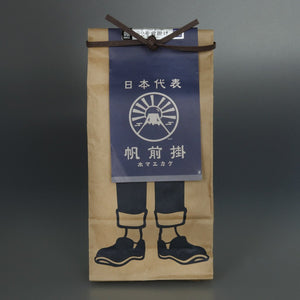 Genuine Maekake such as this one are only made in Toyohashi City. The cotton fabric is especially woven on a narrow loom in small batches, which gives the apron its distinctive texture. The fringed hem is also a traditional feature.