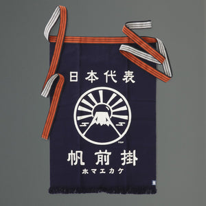 This traditional Japanese apron or 'Maekake', is made in exactly the same way as they were in the Edo period, more that 250 years ago. Originally they were cut from old sails for fisherman to wear when processing their catches.