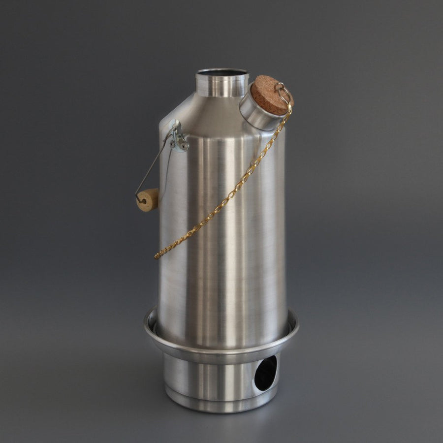 The kettle consists of a water jacket surrounding a shielded fire chamber which creates an upward chimney draft ensuring efficient and rapid boiling even in wet and windy conditions.