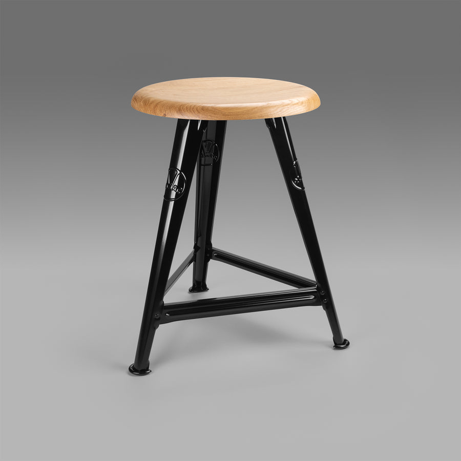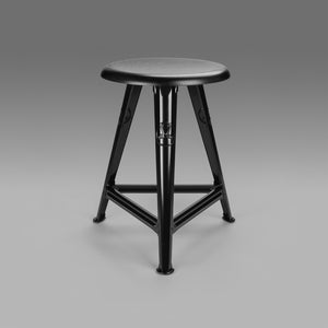The 'Rowac-Schemel', meaning 'stool', was a ubiquitous sight in factories, workshops and schools across Germany from the 1900s until the 1950s. Made and designed by Rowac around the turn of the 20th century, its pioneering, lightweight and durable pressed metal construction proved indispensable to workers and students alike.