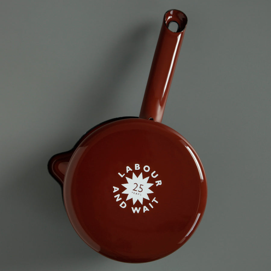 A special edition of our popular enamel milk pot, made to celebrate our 25th anniversary. Inspired by vintage enamelware, the exterior is a traditional red oxide colour, and the interior is speckled. The pot is ideal for hot chocolate and according to our customers, it's great for making porridge or warming a baby's bottle! Made in Austria by Riess.