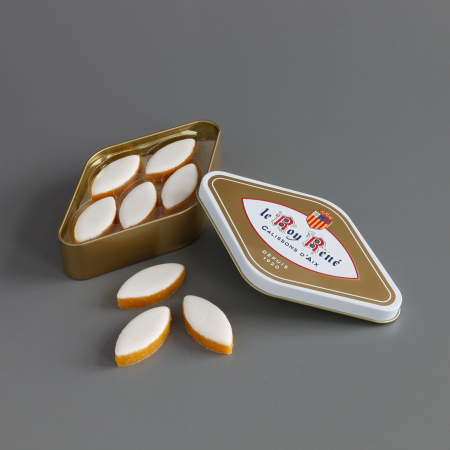 These marzipan-like delicacies are traditionally made in Aix-en-Provence. The smooth textured base is made from finely ground almonds and candied fruit, and topped with royal icing. The calissons have a delicate melon flavour.