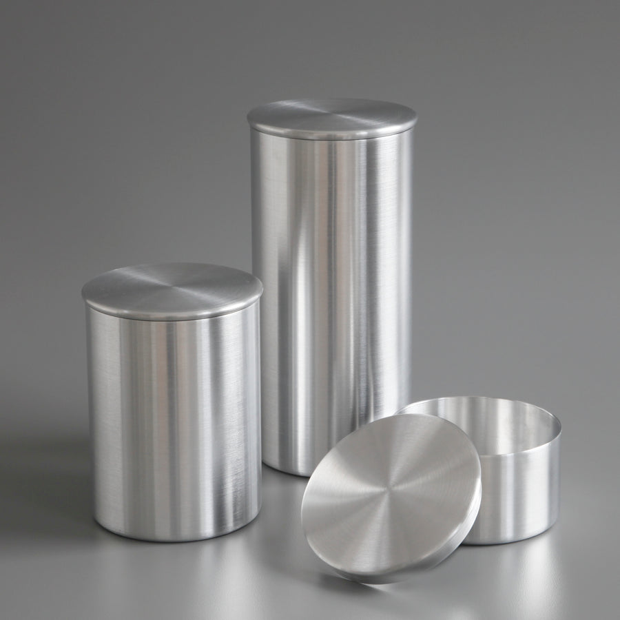 Honest and simple aluminium storage canisters. Made by a company with a long history in the manufacture of cookware and household goods.