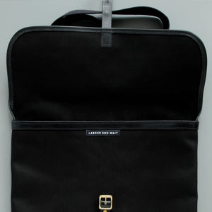 We selected this style from the company archives, and it is now made exclusively for us. It is made from a bonded fabric which makes it weatherproof, and its square format makes it ideal for carrying a lap top computer, files and papers.
