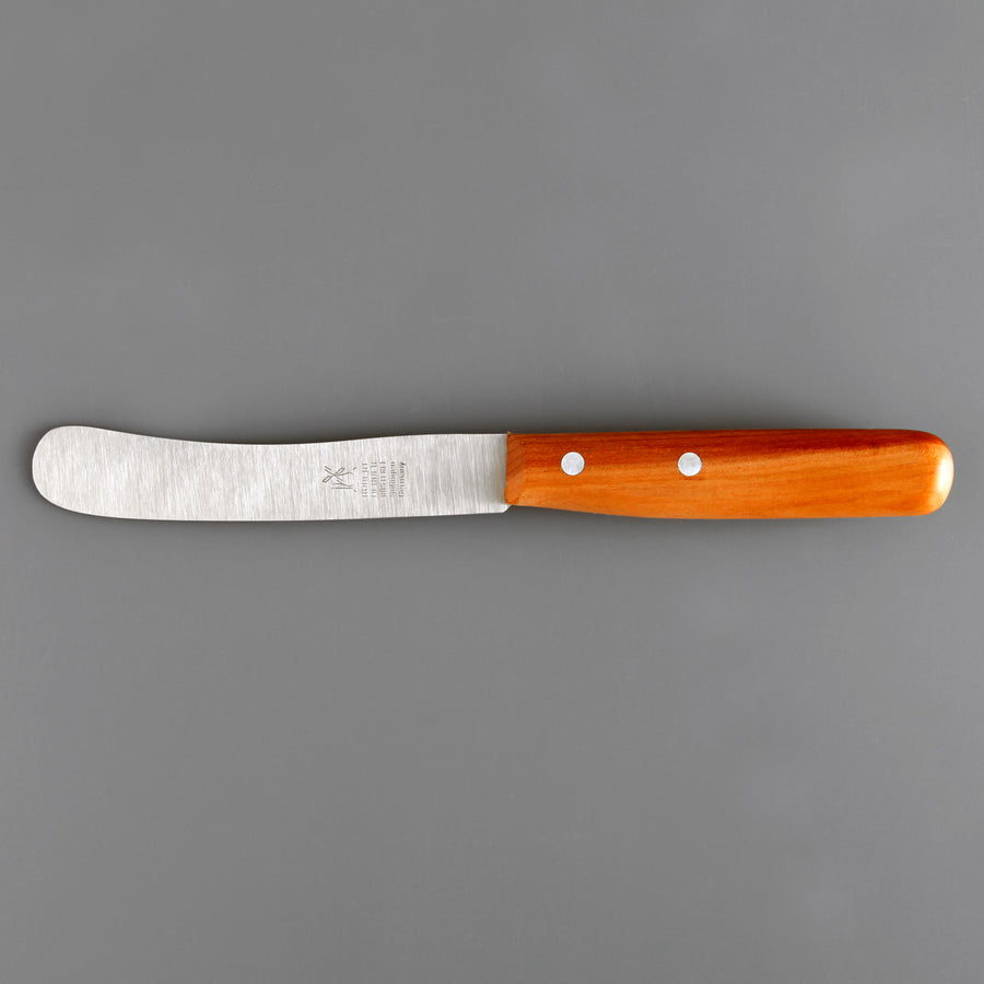 This stainless steel knife is of a form found on breakfast tables throughout Germany. The traditional shape makes it ideal for buttering bread and toast, and for cutting cheese and crusty rolls.