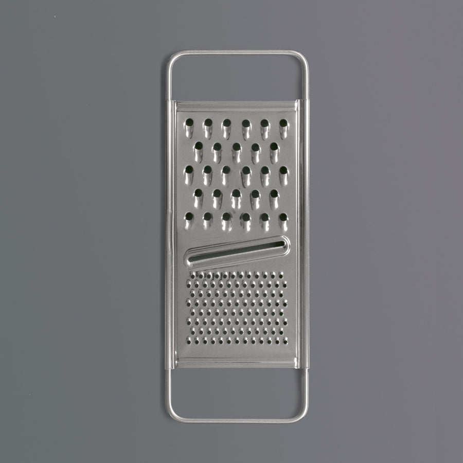 This sturdy stainless steel grater is a must for any kitchen. The coarse and fine grating blades face in opposing directions to make light work of cheese, carrots, nutmeg, lemon zest, etc, while a slicing blade on the underneath takes care of cucumbers and is perfect for dauphinois. This style of grater is simple to use and easy to clean.