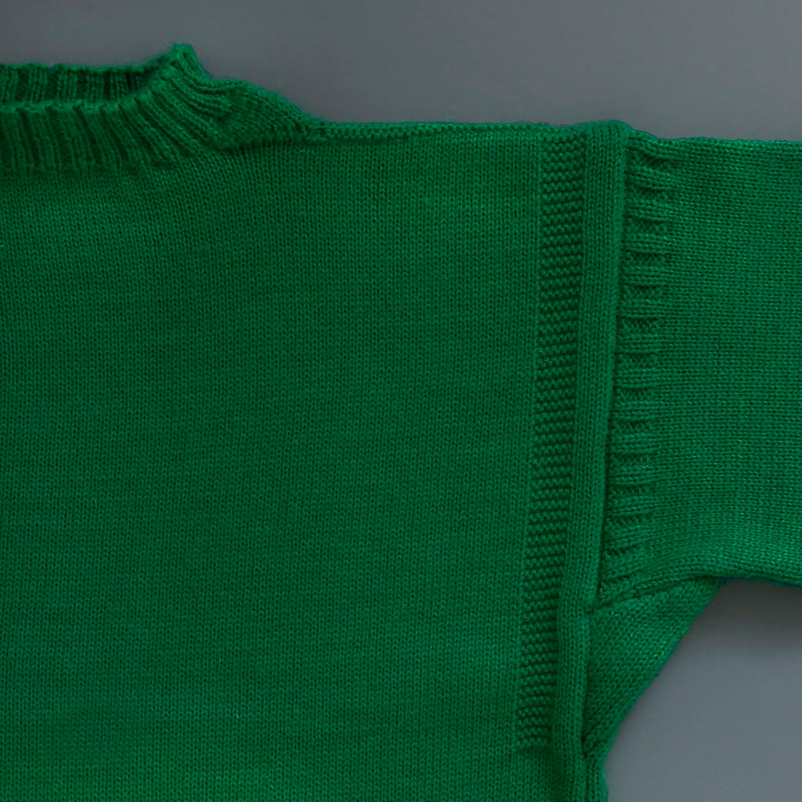 A traditional hand-framed jumper from the British Channel Island of Guernsey. An authentic garment designed for seamen, who required a warm, hard wearing and comfortable item that would resist the sea spray. 100% wool.