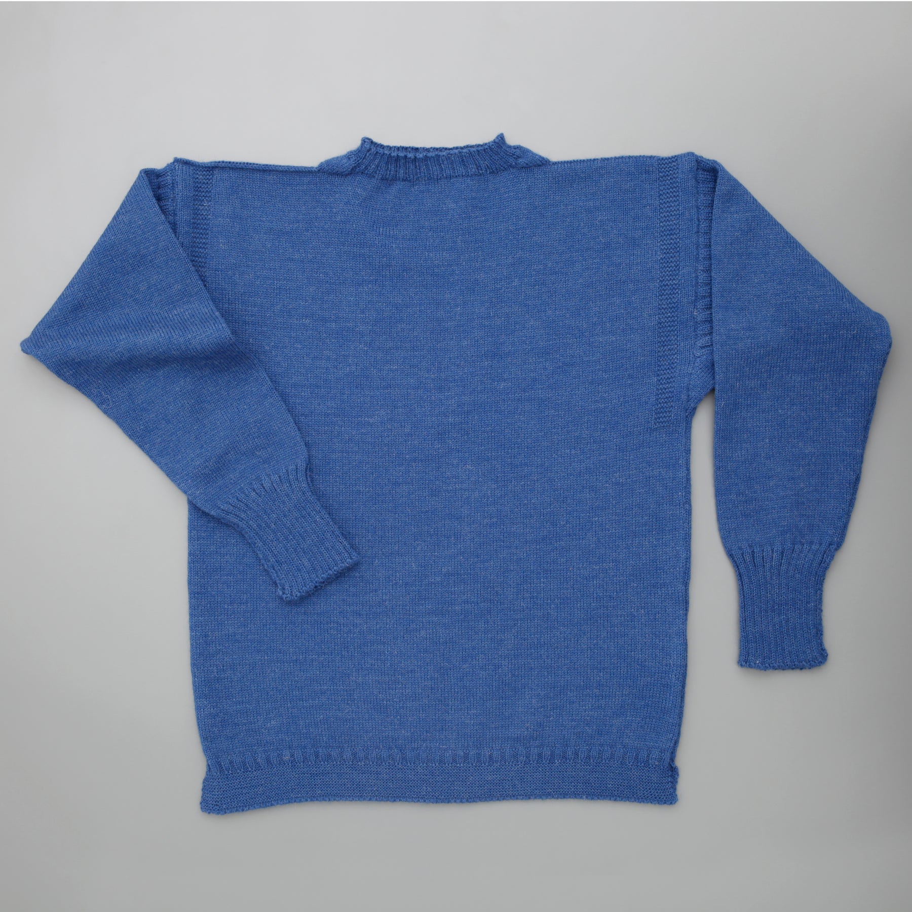 A traditional hand-framed jumper from the British Channel Island of Guernsey. An authentic garment designed for seamen, who required a warm, hard wearing and comfortable item that would resist the sea spray. 100% wool.
