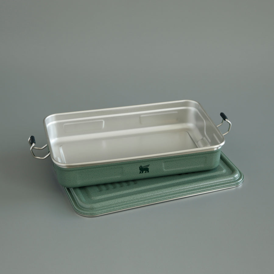 This durable multi-use container is inspired by the iconic 1950s lunch box design. It has a secure latch closure and is made from robust food safe stainless steel. Ideal for transporting and storing food on the go, or any other bits and bobs for that matter! Whether you’re heading to work, fishing, hiking or just organising things at home. Its stackable design makes it a practical space saver.
