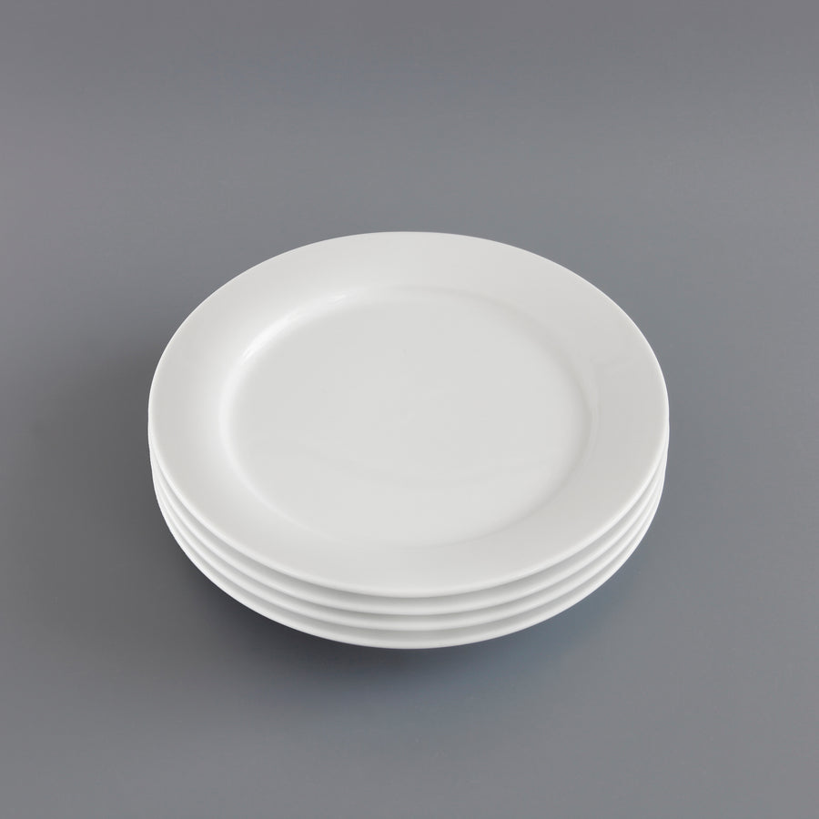 These side plates were designed as part of a system of stackable crockery by Nick Roericht in 1959 as his final thesis at the Ulm School of Design. The School was founded by former Bauhaus student Max Bill with many of its ideals, but with a more utilitarian style.